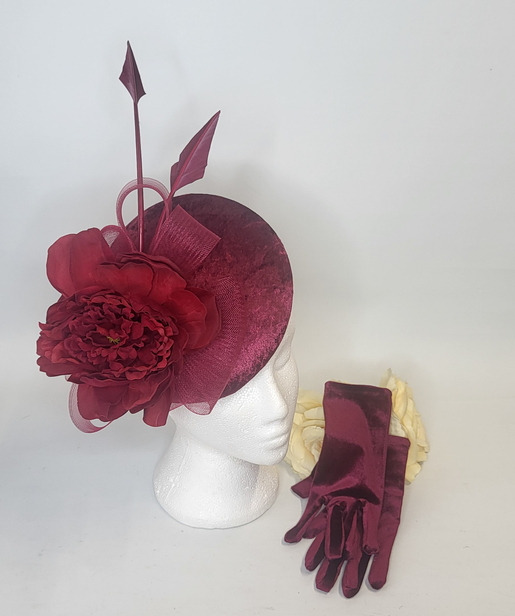 WINE VELVET LADIES GLOVES FASCINATOR IS NOT INCLUDED IN THE RETAIL PRICE SHOWN AND IS SOLD SEPARATELY